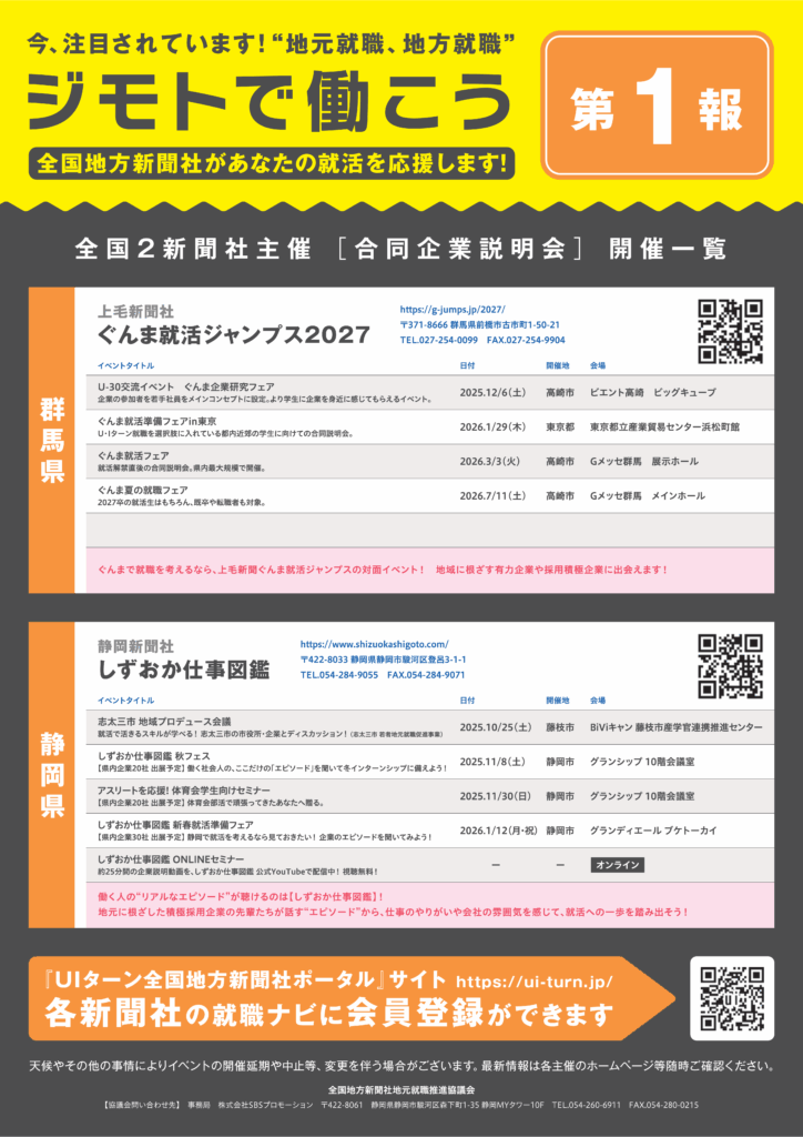 今年度は、協賛新聞社(7社)による、2027年春卒業予定学生向けに各地方新聞社の就活情報サイトへ会員登録を勧奨する合同案内チラシを作成しました。